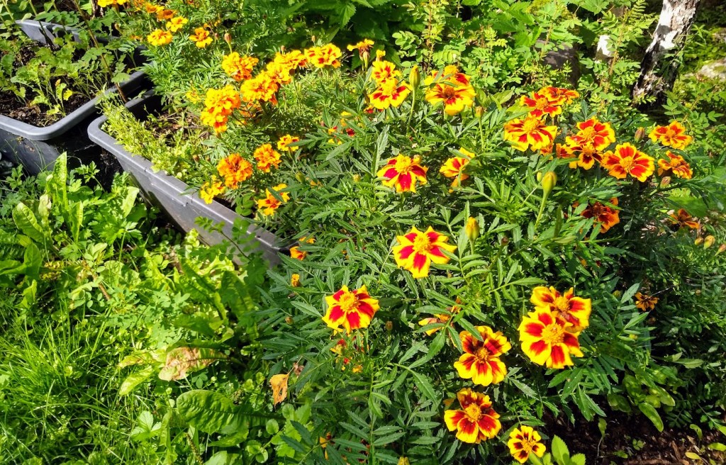 Korjasin myös laatikkoviljelmistä terhakkaita lehtikaaleja ja ensimmäiset tomaatit. Viikonlopun ruokalistalla oli muurikalla paistettua lohta ja kuhaa, perunoita ja sienikastiketta, omatekoiset hampurilaiset sekä vohveleita.