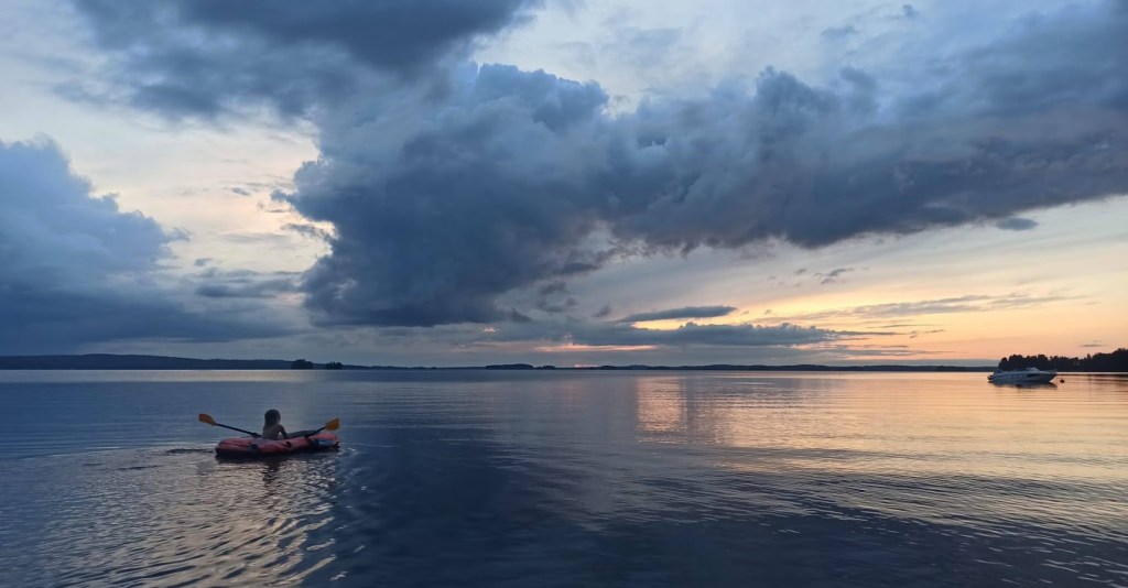 Viikonloppu tuntui kesältä, kun vietimme mökillä laatuaikaa yhdeksän hengen joukkueella. Lapset uivat ja soutelivat kumiveneellä.