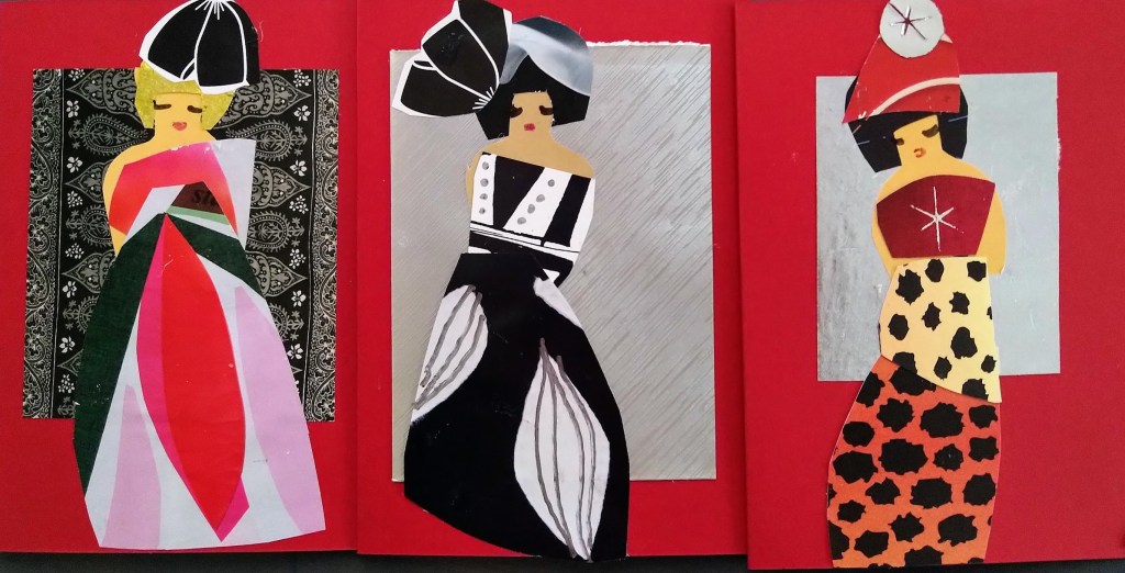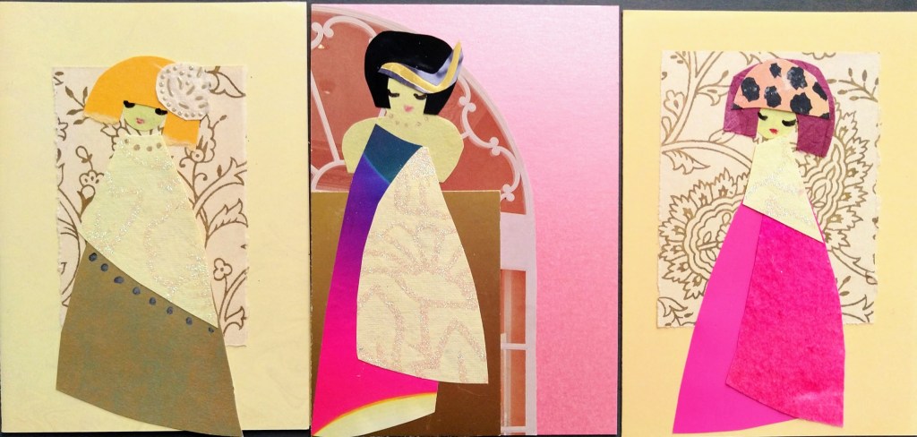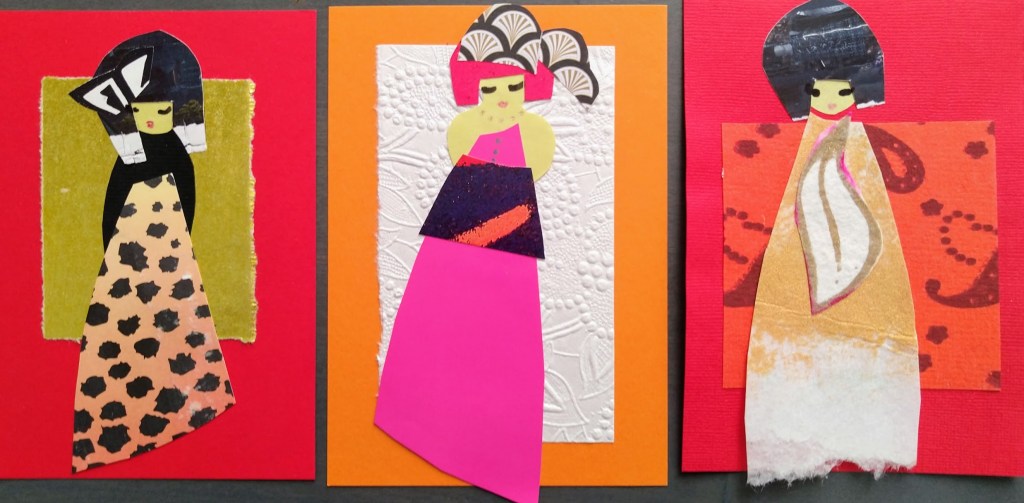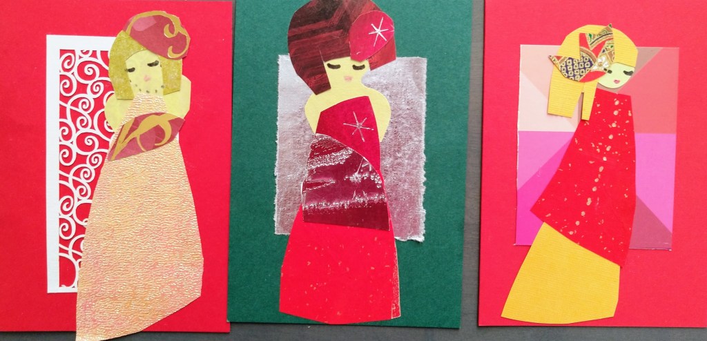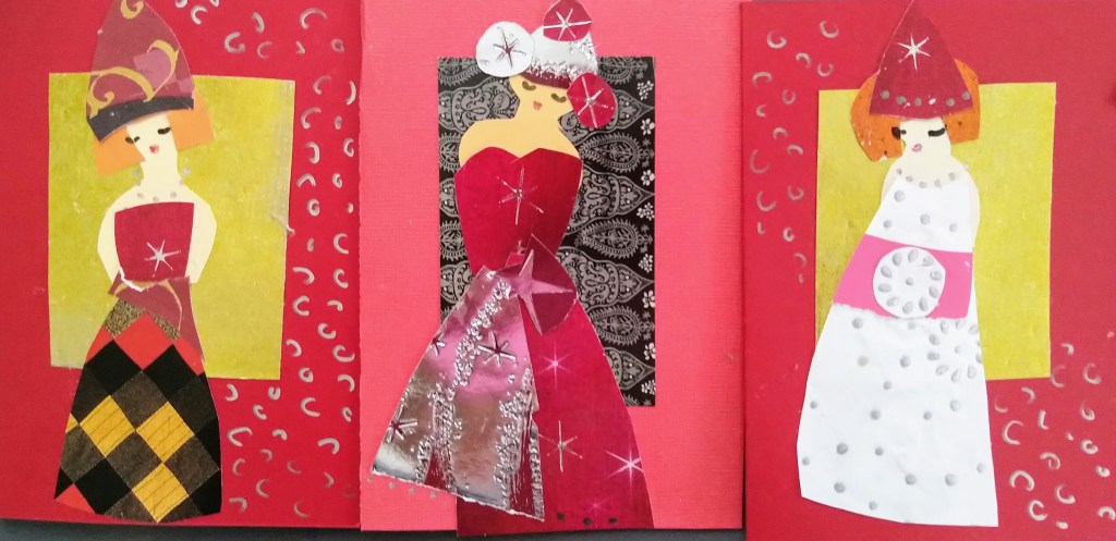 Oli ilo sommitella värikkäistä paperinpaloista asuja neitosille. Voi olla, että ystävät saavat tänä vuonna omatekoisen uniikkikappaleen!