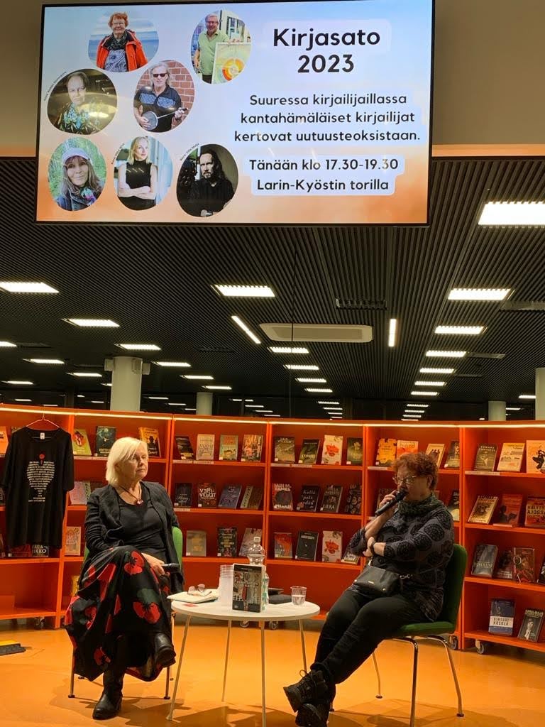 Sain hehkuttaa kirjaprosessilla 15 minuutin ajan. En ehtinyt jännittää, sillä omista tekemisistä oli helppo puhua. Sain jälkikäteen kiitosta, että kaikki meni hyvin. Esikoiskirjailija (!) kiittää.