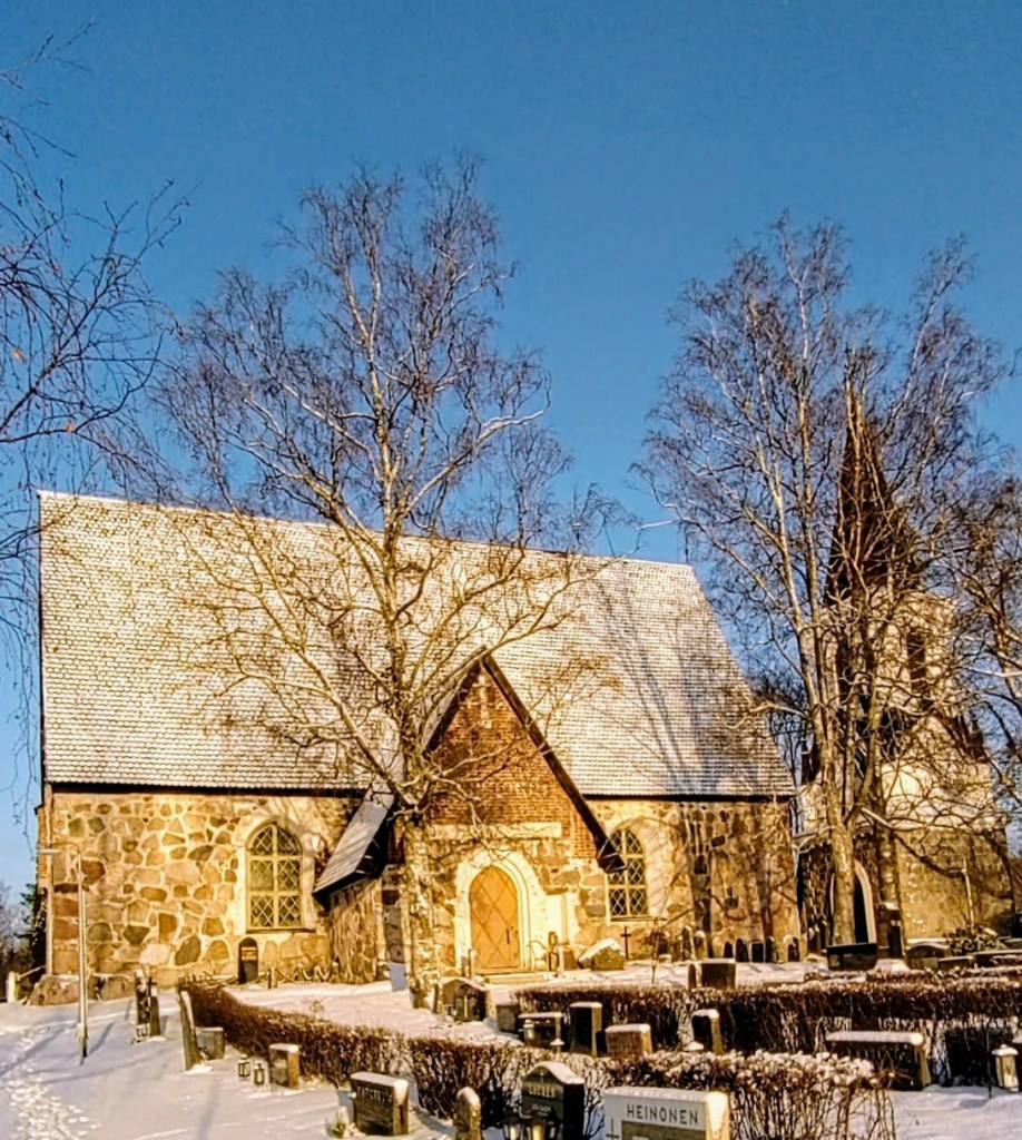 Niin muistelivat muutkin. Ehdimme ajoissa auringonsäteiden saattelemina Vanajan kirkolle. Pakkasta oli yhdeksän astetta ja lunta maassa. Kirkko täyttyi nopeasti vieraista ja ennätin halaamaan ja kättelemään kaikki.