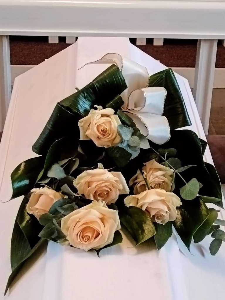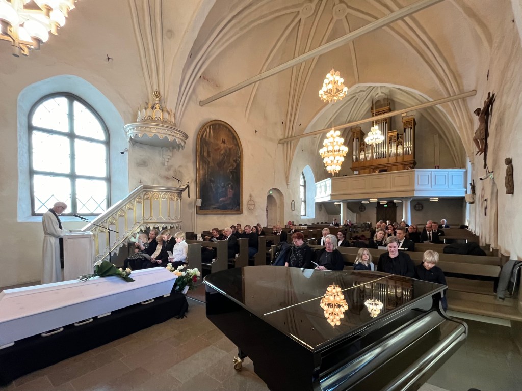 Pastori Reijo Sillanpää piti liikuttavan puheen Jussin ja minun elämänvaiheista. Papinrouva Petra Saraste lauloi siunaustilaisuuden lopuksi kirkkaalla äänellä toivomani kappaleen ”Sua kohti Herrani”, kun kantajat Miika ja Mikko, Esko ja Tuomas sekä Immo ja Tero nostivat samppanjavärisin ruusuin koristellun arkun.