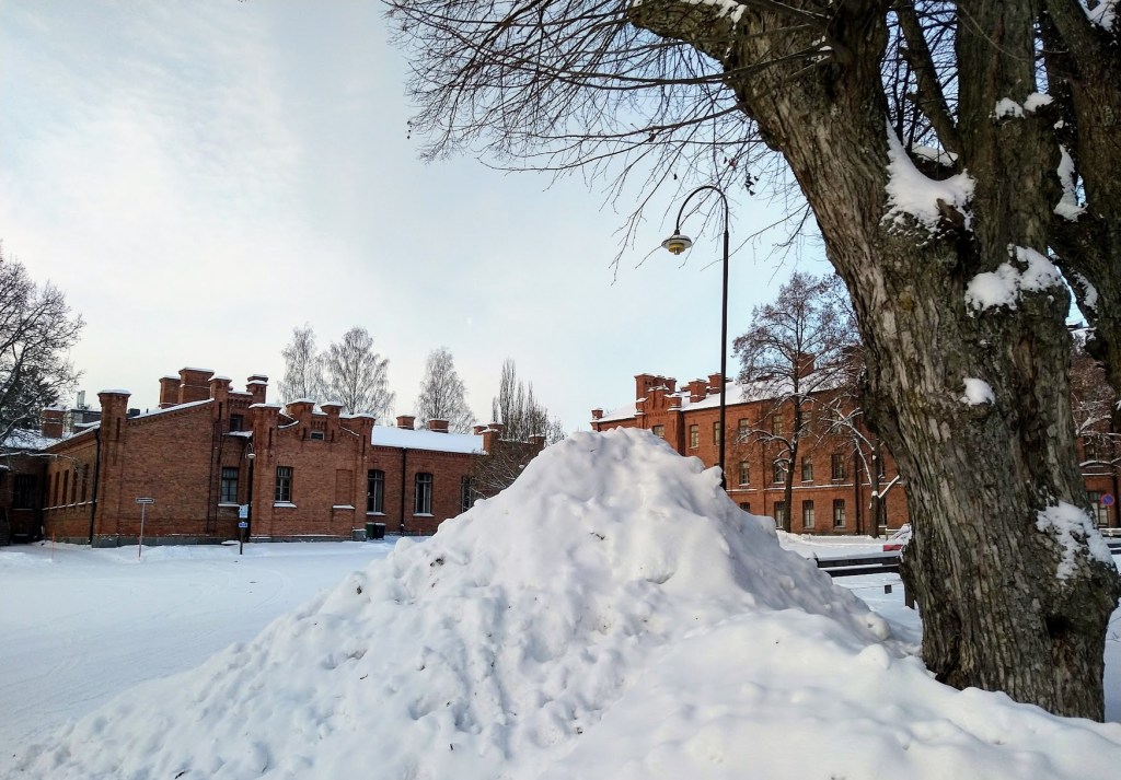Hämeenlinnan korkeudelle on tupruttanut runsaasti lunta. Auraajat eivät pysy lumentulon tahdissa ja me tallaajat saamme kävellä kinoksissa. Valon määrä on kasvanut, mutta myös liukkaus. Nyt kun säännölliset kävelyretket Visamäkeen Jussin luo ovat ohi, ihmettelen päivien pituutta.