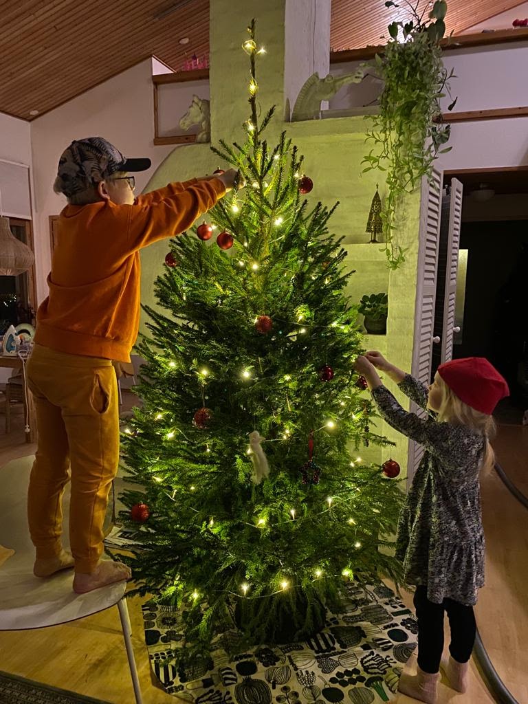 Miikan perhe soitteli eilen autosta, kun he palailivat jouluostoksilta. Sain ilokseni kuvan illan koristeluista. Minullakin on vähän joulun tuntua, kun poltan iltaisin kynttilöitä ja valkoiset hyasintit tuoksuvat. Lahjaksi saamani amaryllis jaksaa avata kukan toisensa jälkeen. Parvekkeella loistaa ledvalonauha ja radiosta kuuluu joululauluja.