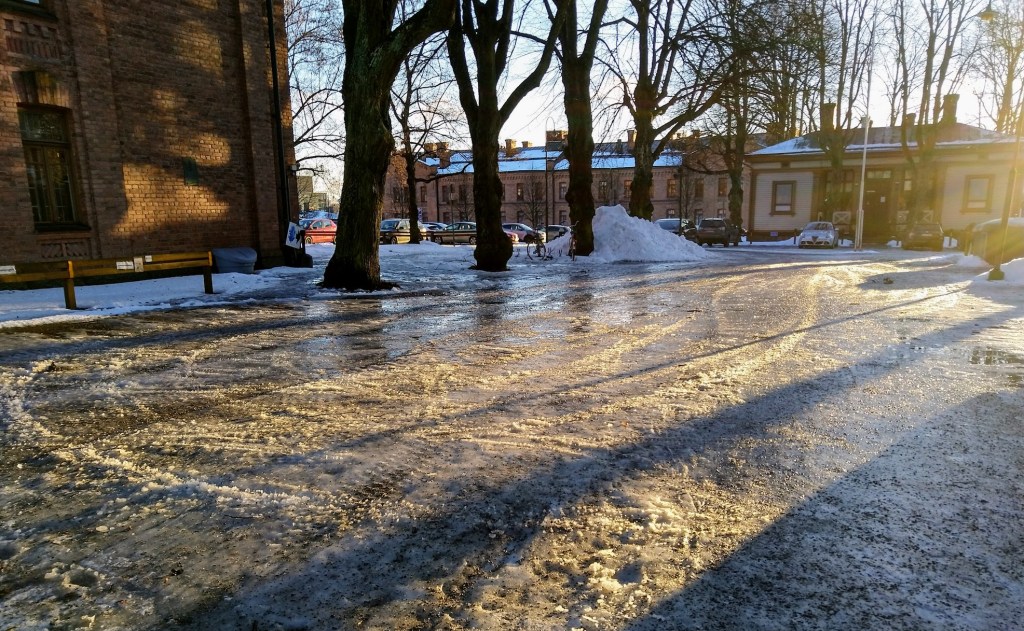 Radio Häme varoitti aamulla erittäin liukkaista jalkakäytävistä. Kuuntelin sateen ropinaa ja pähkäilin kauppaan lähtemista. Koska huomiseksi on luvassa pakkasta, arvelin, että loskakeli on pienempi paha.