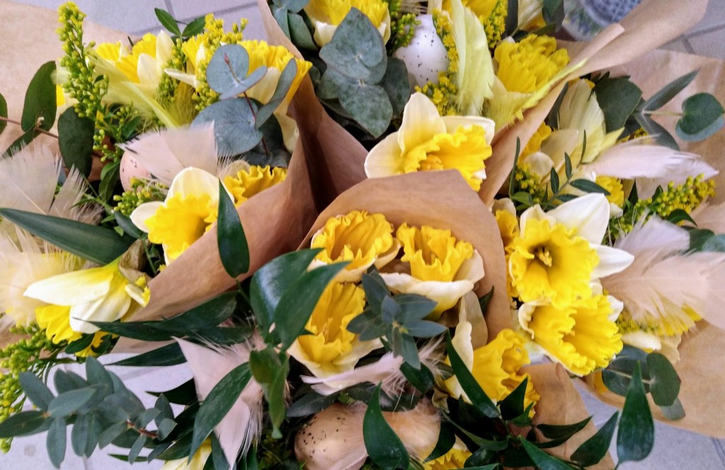 Eilinen sade oli lakannut, mutta taivas oli edelleen pilvessä. Ilma tuoksui keväältä. Ostin vaaleansinisen helmihyasintin silmän iloksi. Kun parvekekelit toteutuvat, hankin lisää sipulikukkia.