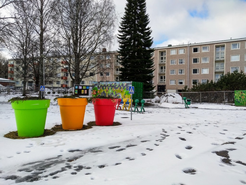 LASTEN LIIKENNEPUISTO OLI VIELÄ LUMEN PEITOSSA