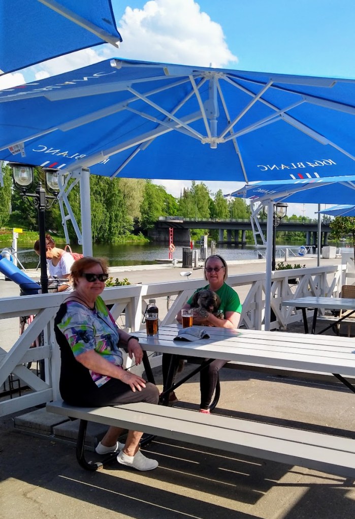 Hellettä edelleen. Kävelimme eilen kuuman kaupungin läpi Rantakasinolle ja nautimme virkistävät oluet. Fidelillä oli oma vesipullo mukana. Purin toukokuun pajanäyttelyni iltakuudelta. Nyt olen vapaalla tai ainakin kesätauolla. Olo on helpottunut, mutta vähän haikea. Kustannustoimittajani Veera on luvannut kommentoida käsikirjoitusta ensi viikolla. Odotan jo malttamattomana.