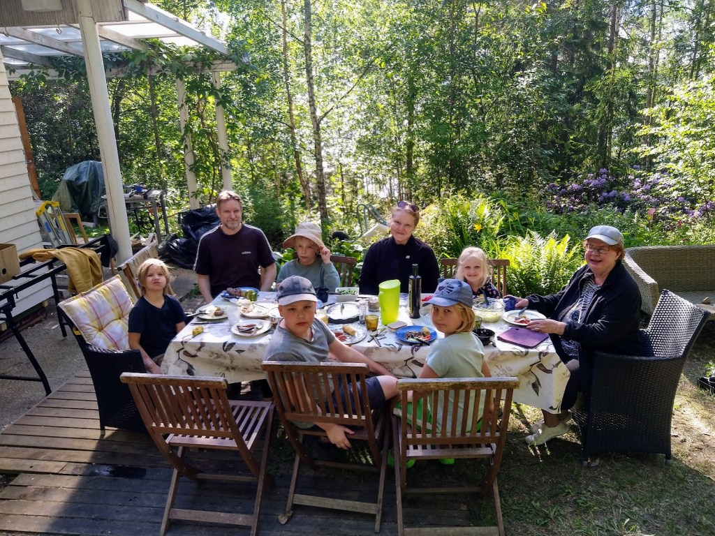 Miika, Otso, Samu ja Ulpu lähtivät illalla järvelle ja kalansaalis oli reilu. Sunnuntaina tunnelma muuttui, sillä aamupäivällä alkanut sade oli rankka. Meillä oli leirin purkupäivä. Annan pojilla on ohjelmassa sporttileiri ja Miikan perheellä kotihommia. Kesä on kuitenkin vielä nuori ja mökkikausi jatkuu viimeistään juhannuksena.
