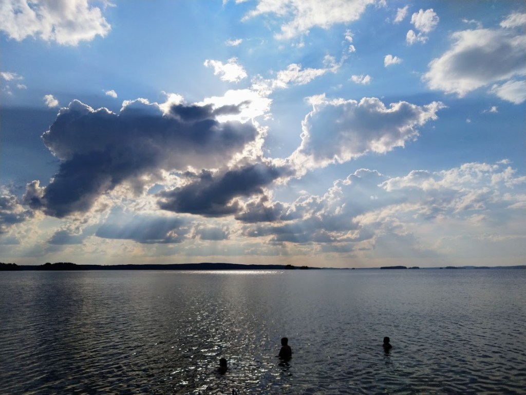 Mökillä on ollut mukavaa. Eilinen päivä oli tuulinen, mutta ei se uimareita haitannut.