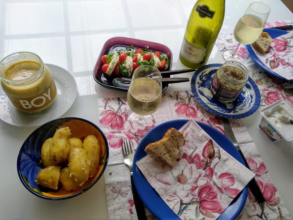 Olemme herkutelleet uusilla perunoilla lähes päivittäin. Juhannuksena ne maistuivat graavilohen ja kermaviilikastikkeen kera erityisen hyviltä.