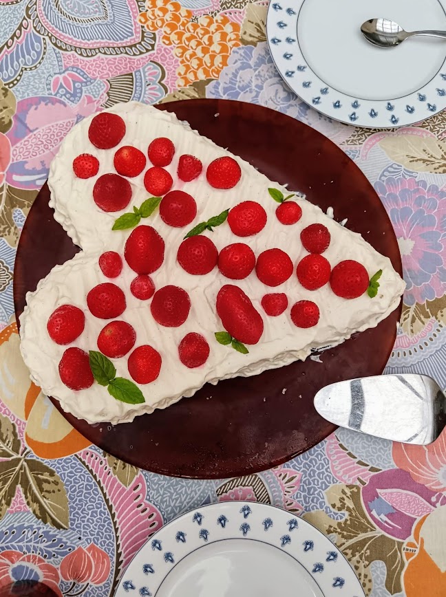 Illallinen nautittiin ulkosalla, samoin mansikkakakkukahvit.