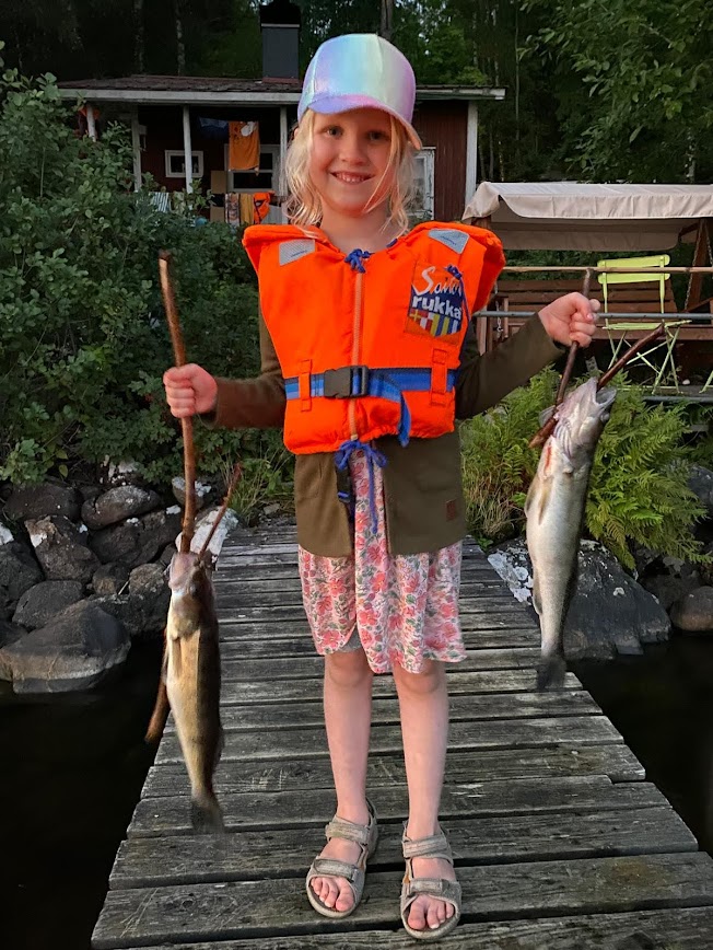Miika vei lapset yökalaan. Ulpu kertoi ylpeänä, että oli nostanut molemmat kuhat haavilla.