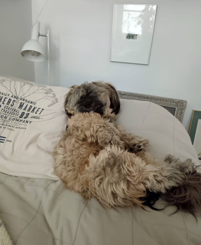 Jaana käy kerran viikossa Tasapainoklinikan kesäkurssilla ja minä pidän silloin Fidelille seuraa. Oma ryhmäni jatkaa elokuun puolessa välissä. Muita harrastuksia ei ole tiedossa, paitsi uimahallikäyntejä, sillä en ole vieläkään saanut puhtia Jussin kuoleman jälkeen. Siskon ja pikkukoiran läheisyys lohduttavat. Syömme ja kokkaamme lähes päivittäin yhdessä.