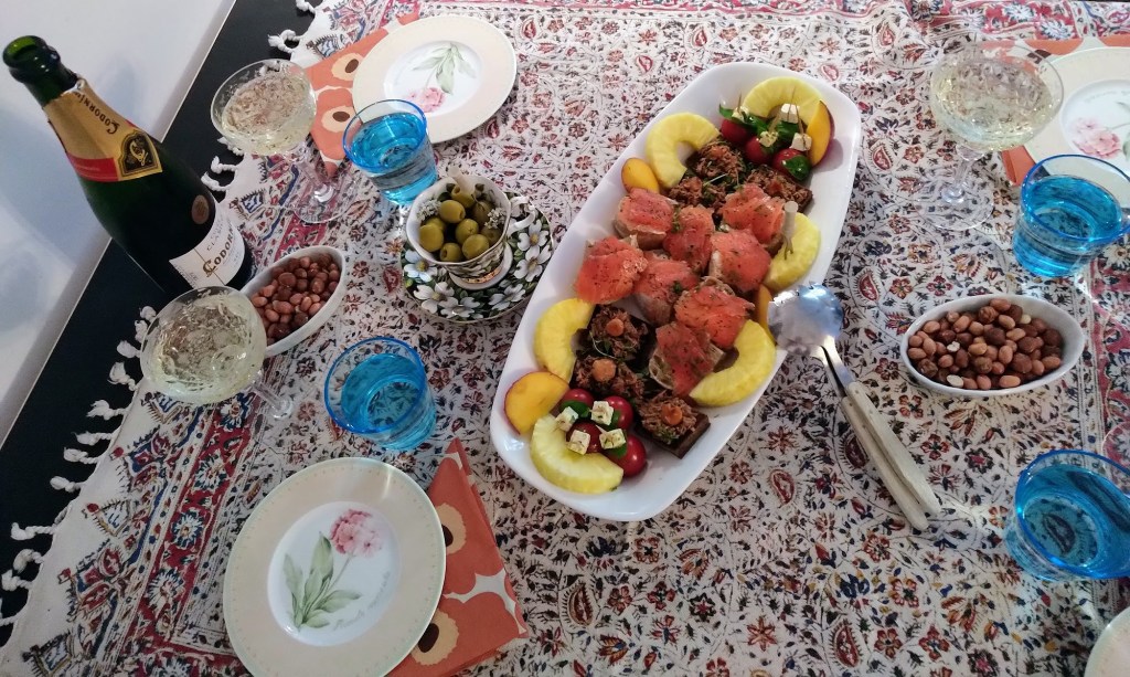 Jaana kutsui meidät tutustumaan uuteen kotiinsa ja tarjosi hulppeat alkupalat. Kiitoksemme.