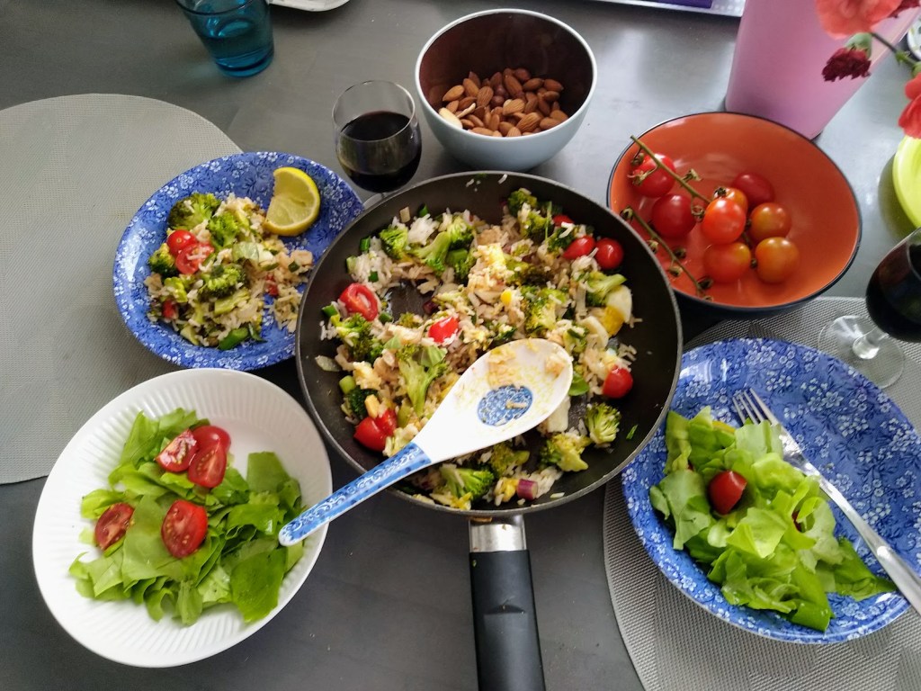 Tänään on lepopäivä. Kokkasin siskolle ja minulle paistettua riisiä parsakaalin kera. Huomenna vuorossa on Hämeenlinnan uusi kesäteatteria ja seuraavat vieraat. Olen seurannut koko viikon sääennustetta, joka lupaa sitkeää sadetta. Ei hyvä.
