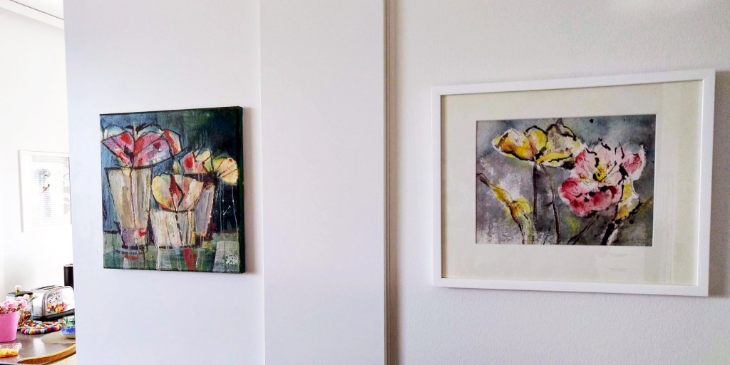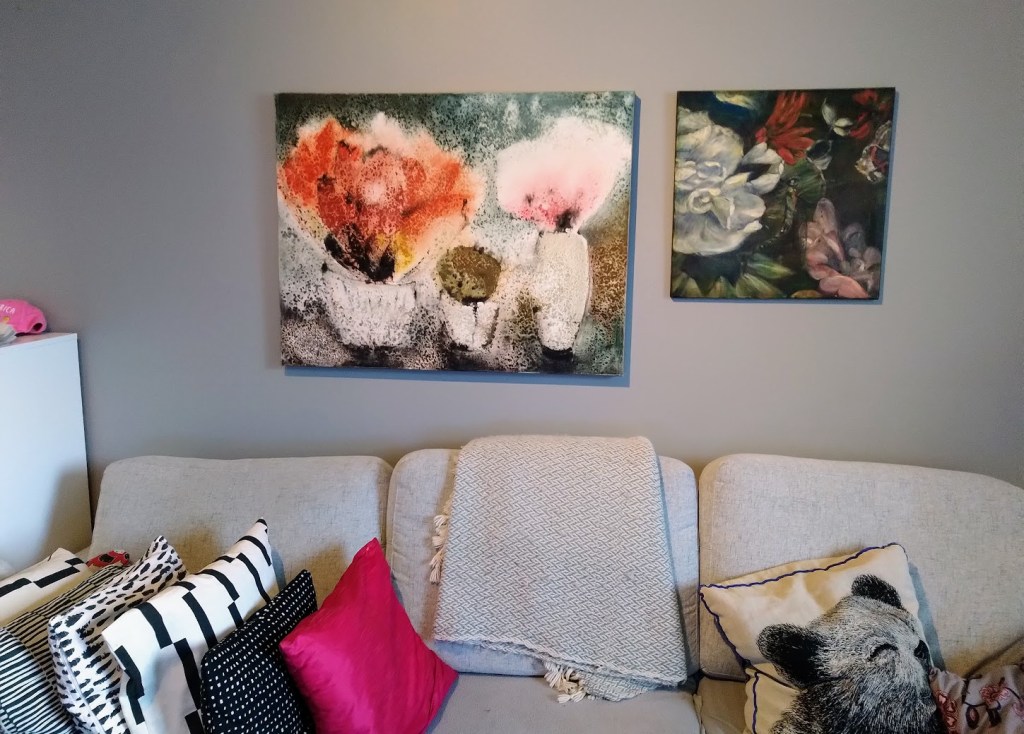Koti kohentui eilen, kun Miika tuli työkalupakin kanssa kiinnittämään muutaman taulun olohuoneeni seinille. Lämmin kiitos, uusi ilme ilahduttaa ja piristää arkea.