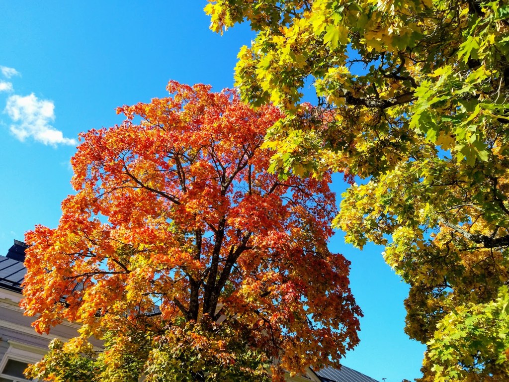 Meillä Hämeenlinnan korkeudella on huikean värikäs syksy. Ruska on parhaimmillaan. Kävelin eilen kuntosalille ja nautin kirpeästä säästä.