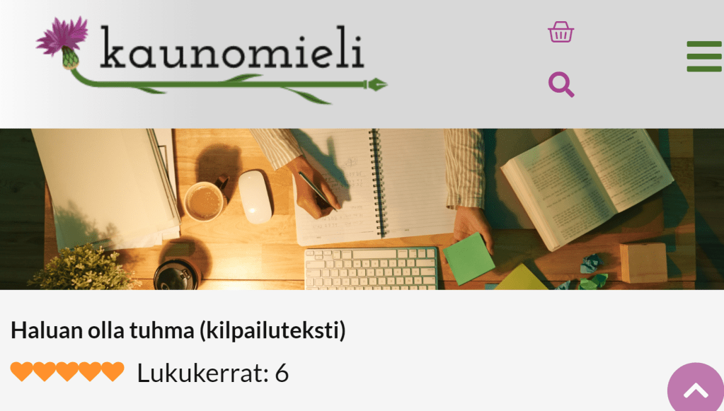 Tarinan taustaa: Osallistuin Kaunomielen kirjoituskilpailuun, mutta en sijoittunut. Olin pettynyt, sillä tämä sekä tarina Povikuningatar ovat olleet näyttävästi esillä etusivulla. Parempi onni seuraavalla kerralla, ehkä…
