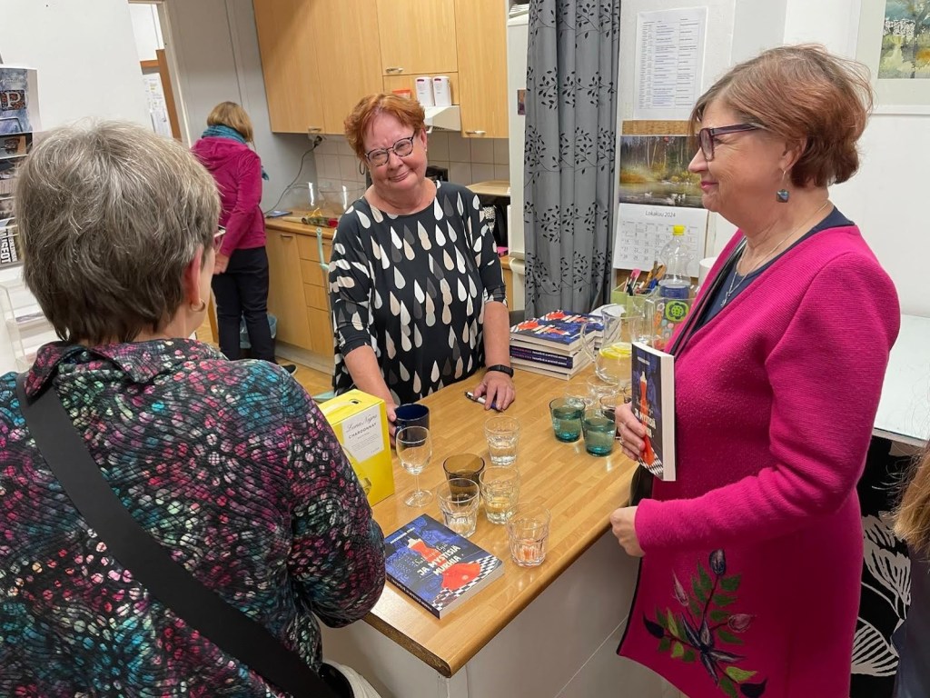 Paikalla oli myös lukuisia hämeenlinnalaisia ystäviä. Marttojen lukupiiriläisiä, graafikkoystäviä ja kirjoittajia Kynäilijät-ryhmästä sekä luovan kirjoittamisen pajasta, kuntosaliohjaajat Rauna ja Lauret suloisten pikkupoikien kanssa sekä perheystävät Lii ja Kaizu. Paikalla olivat myös luottolukijani Mari ja tytär Anna sekä taidenäyttelyn kuraattori Raija.