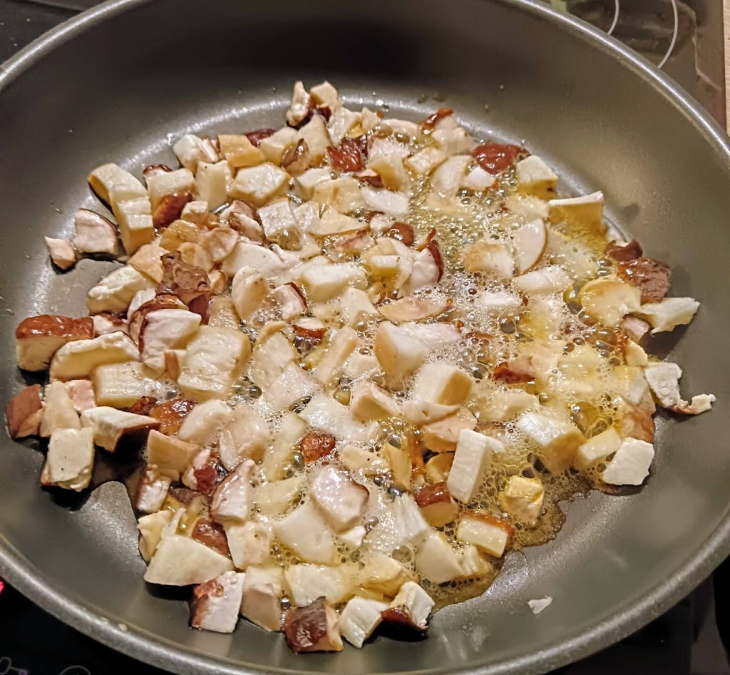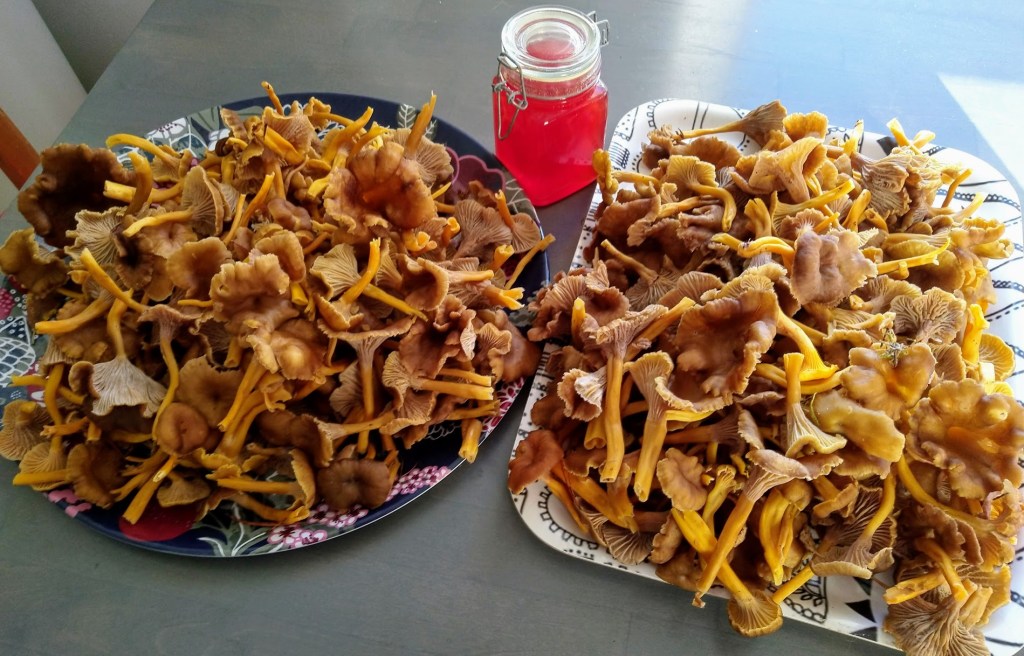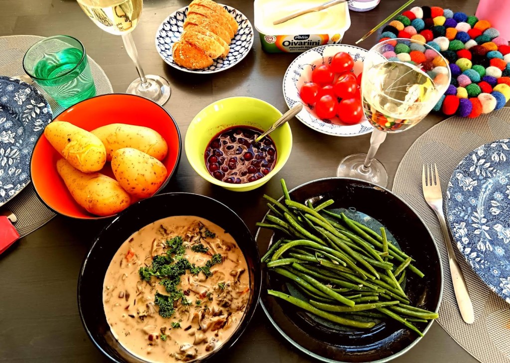 Sienishow on nyt koettu. Tuoksu oli todella mahtava. Oli ilo kokata juhla-ateria tuoreista suppilovahveroista ja lehtikaalista. Tarjosin lisukkeina serkku Liisalta saatuja karpaloita, kiinteitä perunoita ja vihreitä papuja, jotka sisko pyöritteli voissa ja valkosipulissa.