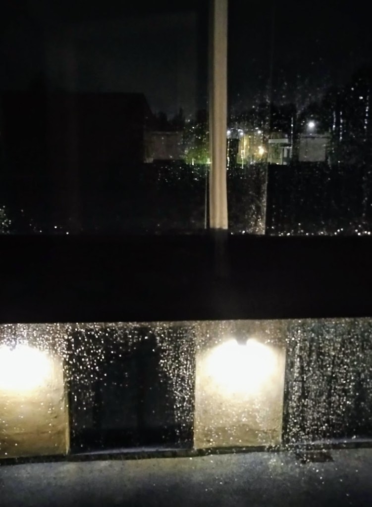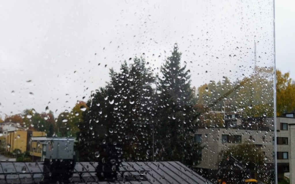 Tätä iloa on nyt riittänyt pari päivää. En uskaltautunut keskiviikkona ulos, sillä tuulenpuuskat olivat vaarallisen voimakkaita ja sitkeää sadetta riitti. Eilen oli pakko lähteä kauppaan. Selvisin onneksi kastumatta. Päivä oli ankean pilvinen ja kolea. Ajattelin myötätunnolla tytärtä, joka maalaa kuusikerroksisen talon ulkoikkunoita nosturin häkissä.