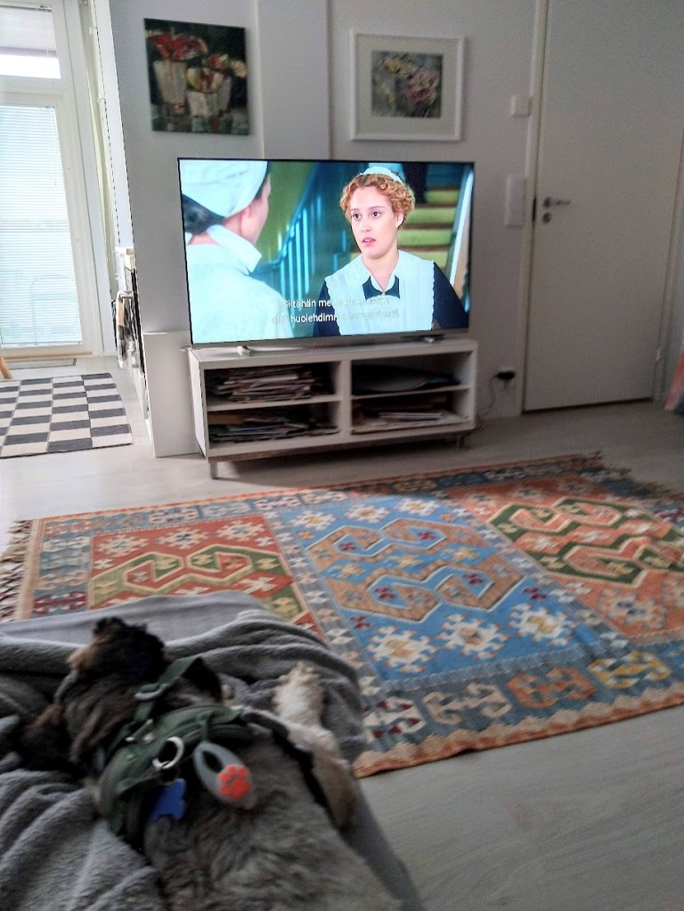 Vietin taas kerran laatuaikaa hoitokoira Fidelin kanssa. Majoituimme sohvalle, kun sisko oli asioilla kaupungilla. Kerroin, että meillä on monta jaksoa La Promesaa katsomatta Yle Areenasta. Koira haukotteli, eikä olisi voinut olla vähemmän kiinnostunut.