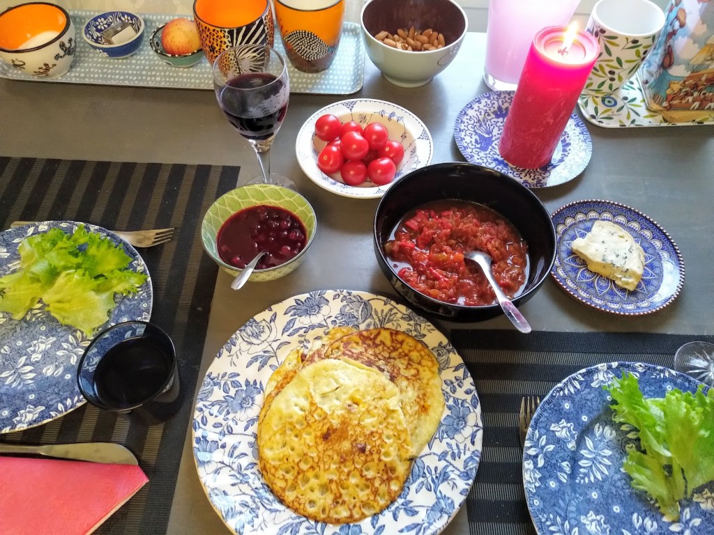 Sunnuntaipäivän kohokohta oli maittava lounas yhdessä siskon kanssa. Olen hyödyntänyt kaalinkerää jo parina päivänä. Tänään herkuttelimme kaalitäytteisillä letuilla vahvan omatekoisen tomaattisalsan ja karpalohillon kera.