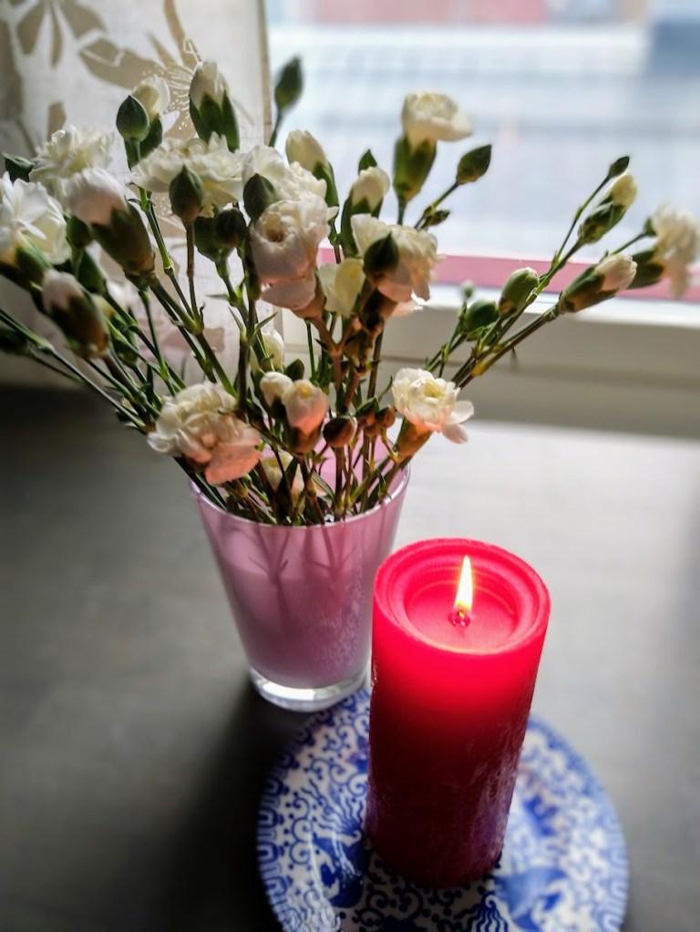 Surullinen päivä, jota olen pelännyt. Jussin kuolemasta on nyt tasan vuosi. Ostin valkoisia terttuneilikoita ja sytytin kynttilän, niin kuin jo monena päivänä aikaisemminkin.