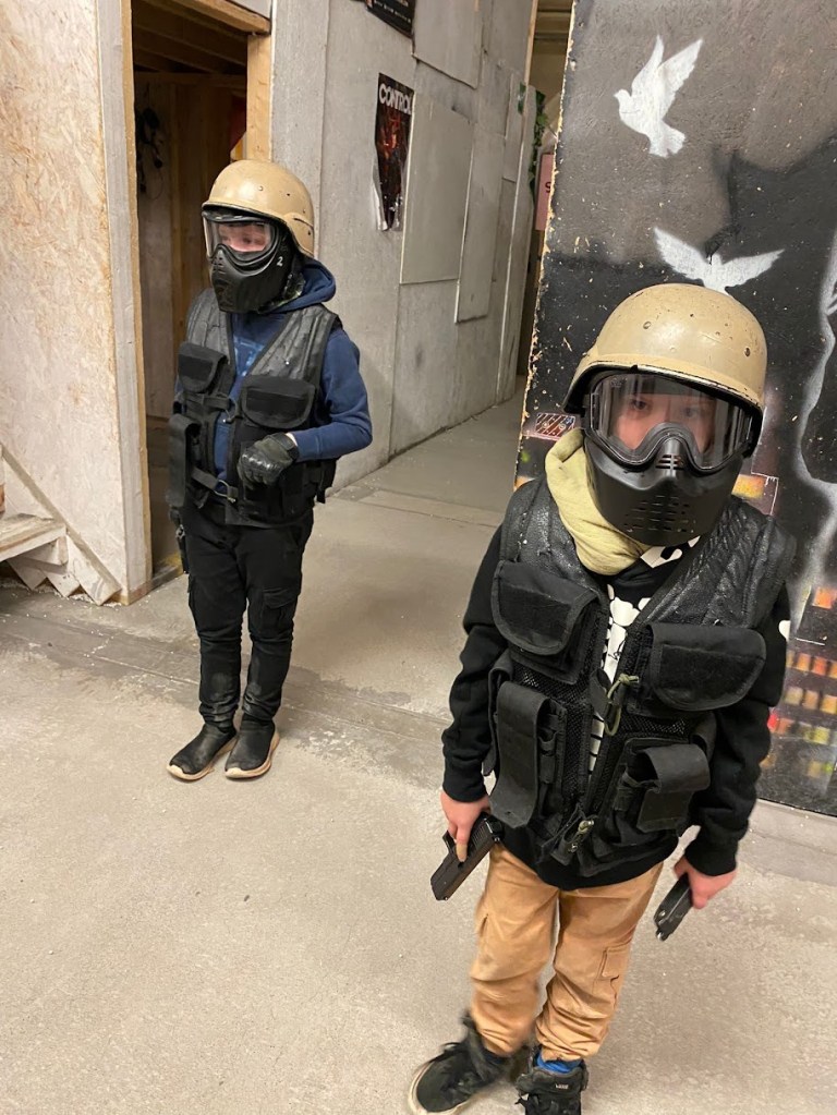 Tänään oli vuorossa kaupunkisota. Kuva näytti hurjalta. Onneksi Miika oli valvomassa nuoria aloittelijoita.