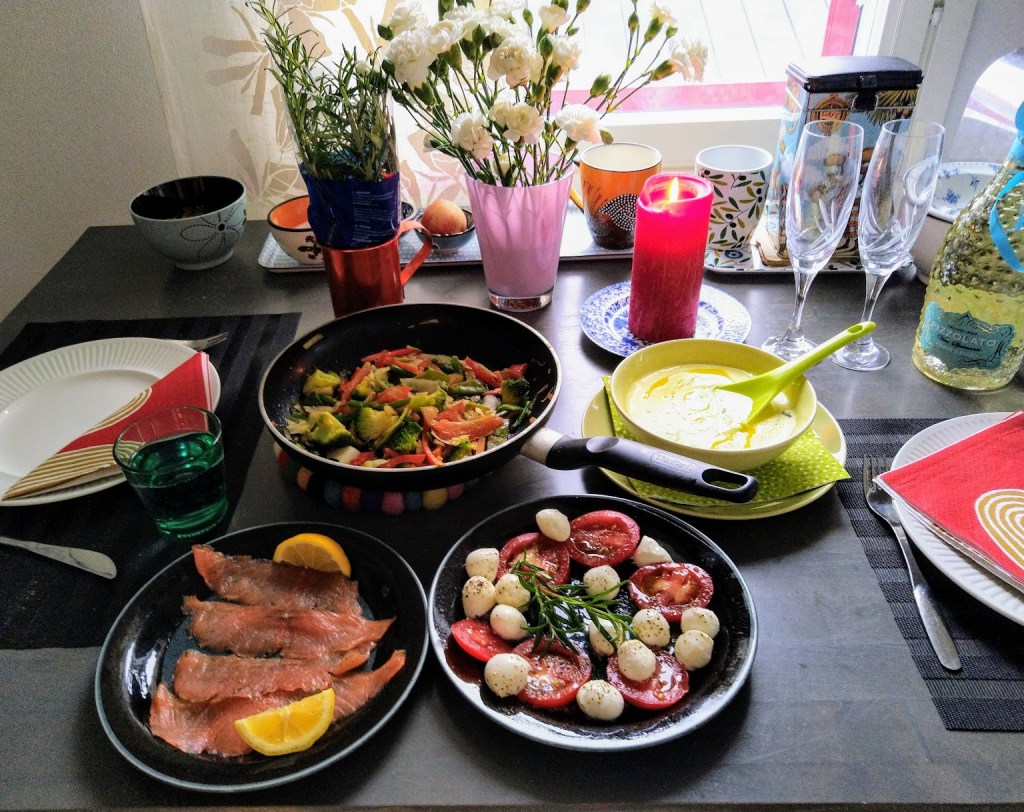Sain tänään lounasvieraaksi ihanan Raijan, joka on auttanut ammattitaitoisesti taidekuvioissa. Huomasin taas kerran, että kokkaaminen pienessä keittiössä on ilo. Maljat ystävyydelle kirkastivat päivämme.