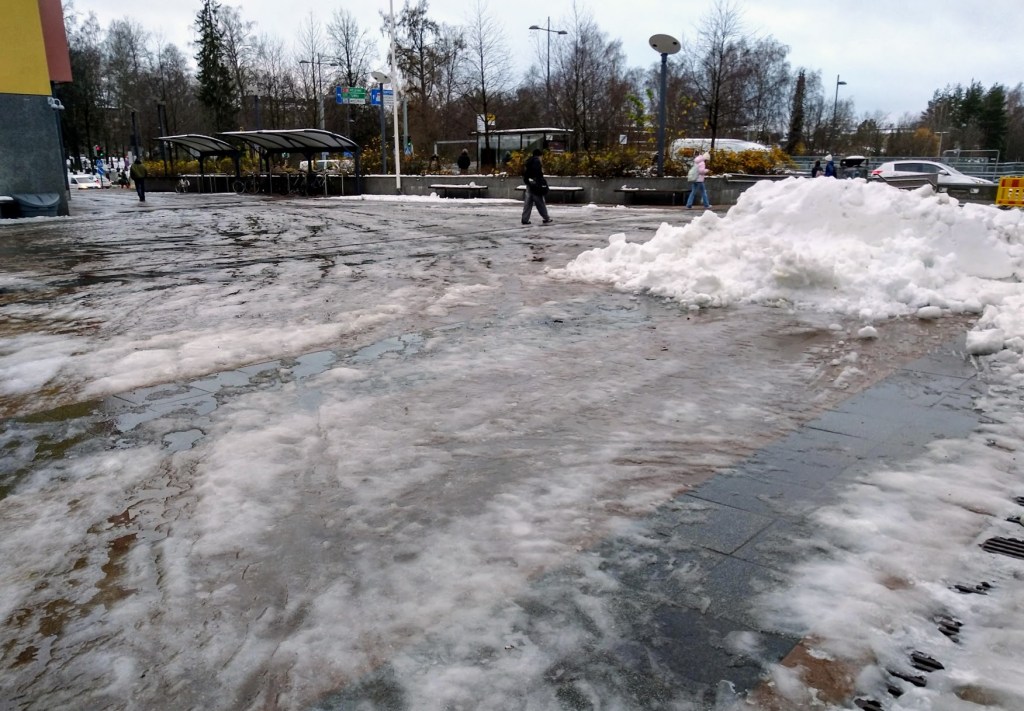 Ilahduttaa, että aivan liian varhain satanut lumi sulaa. Ei tosin voi vielä odottaa kevättä, mutta sain jo esimakua, millaista on kävellä veden peittämän jään päällä. Ei kivaa.