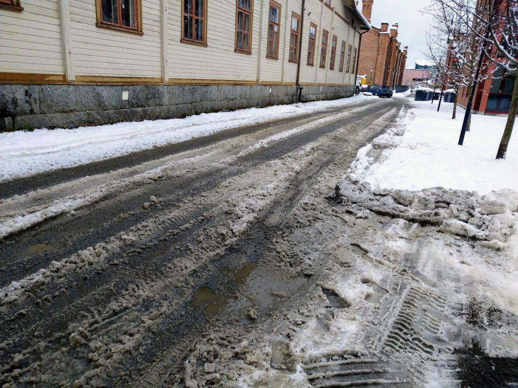 Pilvinen, utuinen, sateinen ja harmaa päivä, Radio Häme kertoi aamulla. Luvassa on plusasteita ja viikolla keli lämpenee. Talvi tuli mielestäni aivan liian varhain. En olisi uskonut vielä viime viikolla, että kaivan piikkikengät komerosta. Ne olivat enemmän kuin tarpeen lähtiessäni eilen aamupäivällä kauppaan. Olin epäillyt hätävarjelun liioittelua, mutta pihapiiri kiilteli kammottavan jäisenä pakkasyön jäljiltä.