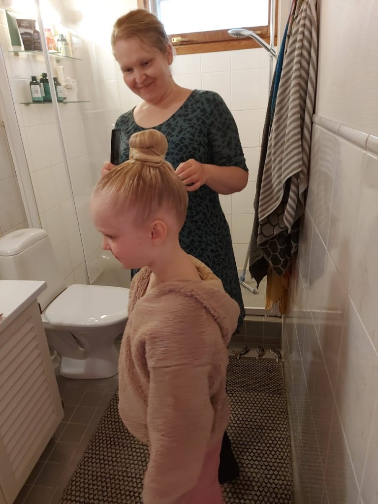 Ulpulla oli eilen voimisteluesitys Espoossa. Tuntuu, kuin olisin ollut mukana, sillä sain ensin kuvia nutturakampauksesta ja sen jälkeen kuvan ja videon tyttöjen ryhmäesityksestä.