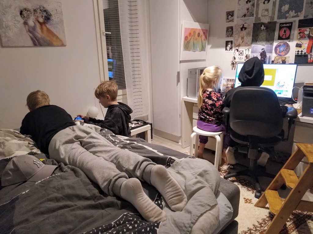 Anna ja Miika menivät laittamaan mökin lopullisesti talvikuntoon. Minä sain lapsukaiset ilokseni. Kaikki muut paitsi Miska tulivat. Hän oli kaverin luona yökylässä.