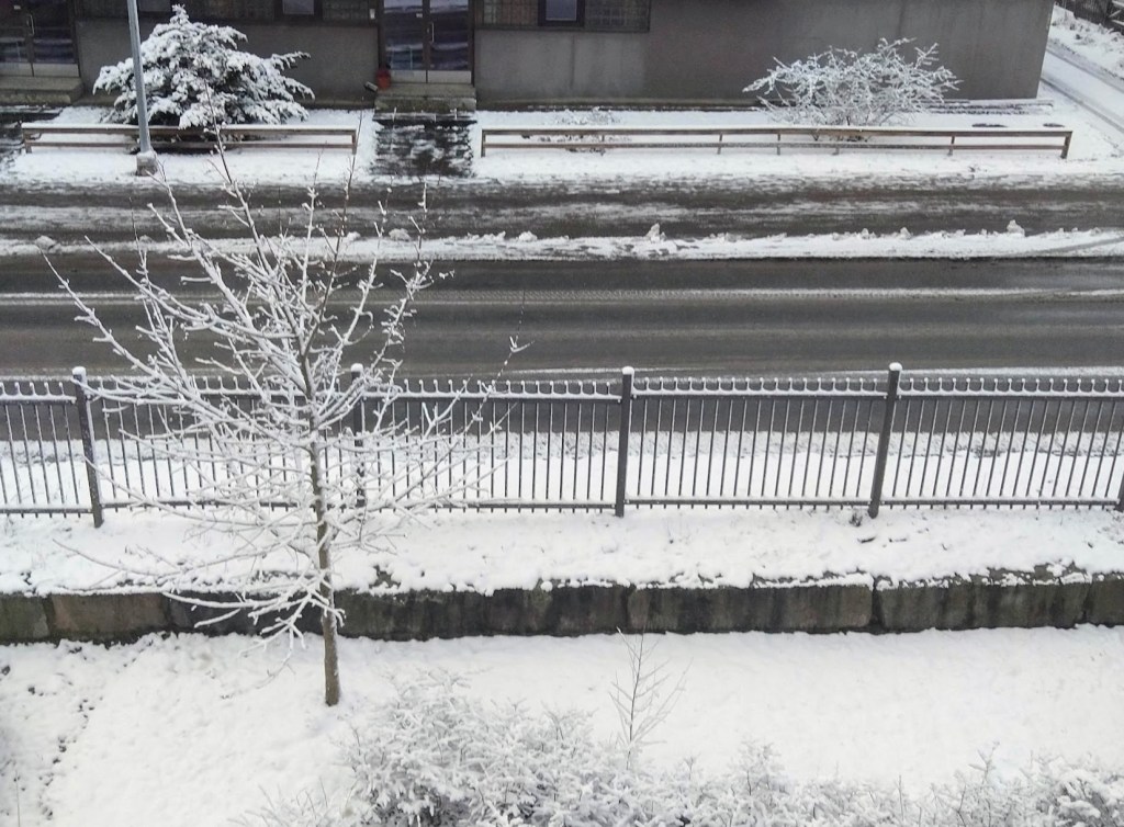 Maa oli valkoinen, kun kurkistin aamulla parvekkeelta. Nyt kahdeksan aikaan pyryttää. En ole ollenkaan varma, että haluan lähteä kuntosalille…