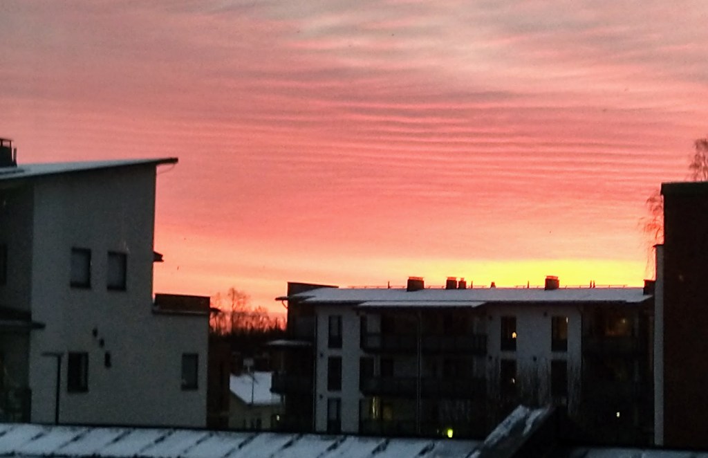 Leudot kelit jatkuvat. Hyvä niin, mutta turvaudun varmuuden vuoksi piikkikenkiin. Minusta on tullut ylivarovainen, jääkelit pelottavat. Jouluun on aikaa vajaat kaksi viikkoa. Marraskuu tuntui pitkältä, mutta nyt aika on kulunut nopeasti.
