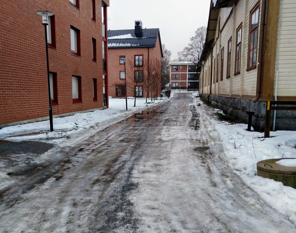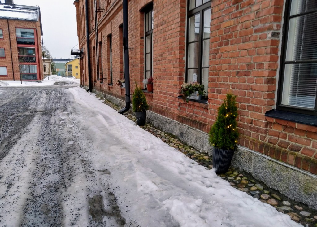 Minä kävin kiertämässä pihapiirin. Aaton keli oli nollassa, yöksi pakastuu. Se tietää, että saamme jatkossakin jäätä ja vettä. Onneksi oli hiekoitettu.