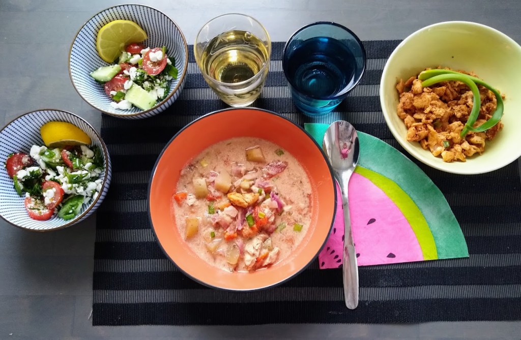 Tarkistin maun ja lisäsin lopuksi pari ruokalusikallista smetanaa sekä hienonnettua kevätsipulia. Annoksesta tuli mukavan ruokainen munankeltuaisen ja raejuusto kera. Mikä parasta, sitä riittää vielä seuraavaksi päiväksikin.