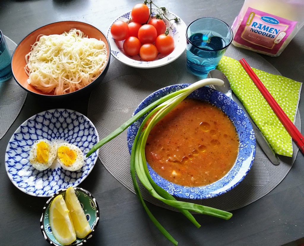 Kokeilin, miltä omatekoinen nuudelikeitto maistuu. Se oli yksi vakioannoksista Thaimaan matkoillamme. Tein kevyen version kasvisliemeen, mutta maustoin sen rohkeasti tuoreella chilillä, valkosipulilla, inkiväärillä ja yrttisuolalla. Maku oli kohdallaan.
