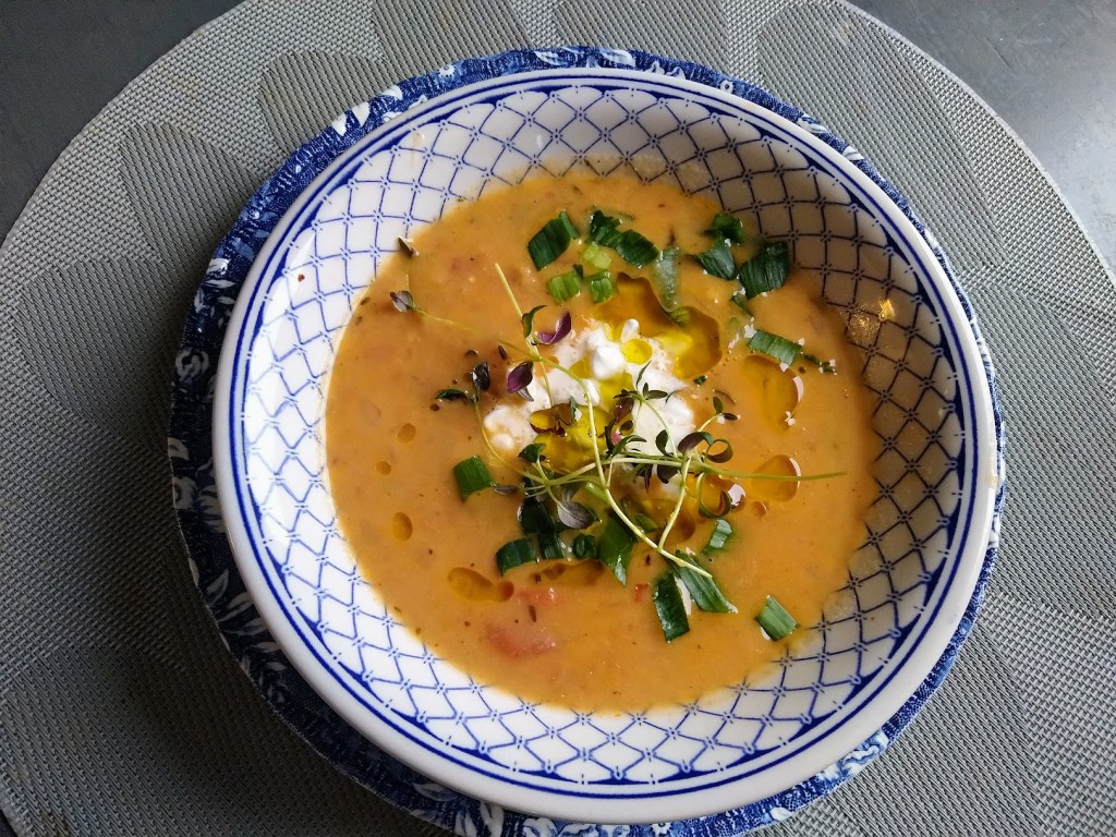 Soseutin kevyesti, maustoin yrttisuolalla, soijakastikkeella, puristetulla sitruunalla sekä tuoreella timjamilla. Lisäsin myös nokareen sulatejuustoa ja tilkan kuohukermaa. Pilkoin kevätsipulia antamaan makua. Tarjosin raejuuston kera. Keitto oli ruokaisa ja kirkasti tammikuun harmaan sateentihuisen päivän.
