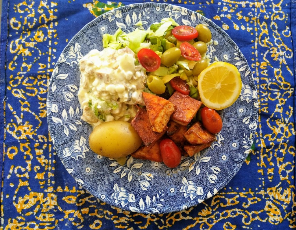– Näyttää ainakin hyvältä. Punaisia kirsikkatomaatteja, vihreää ruohosipulia ja jotain venyvää, onko se juustoa? Anneli arveli.