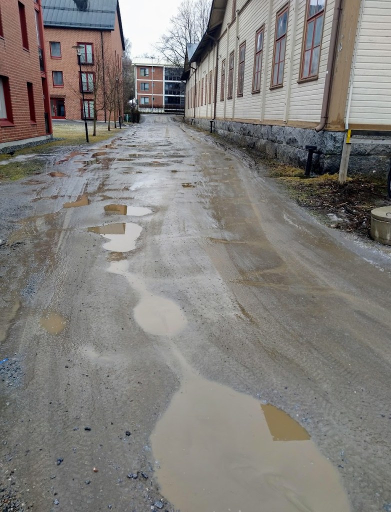 Yöllä satoi räntää ja aamulla silkkaa vettä. Ulkoilin urhoollisesti pahimpia kuoppia vältellen.