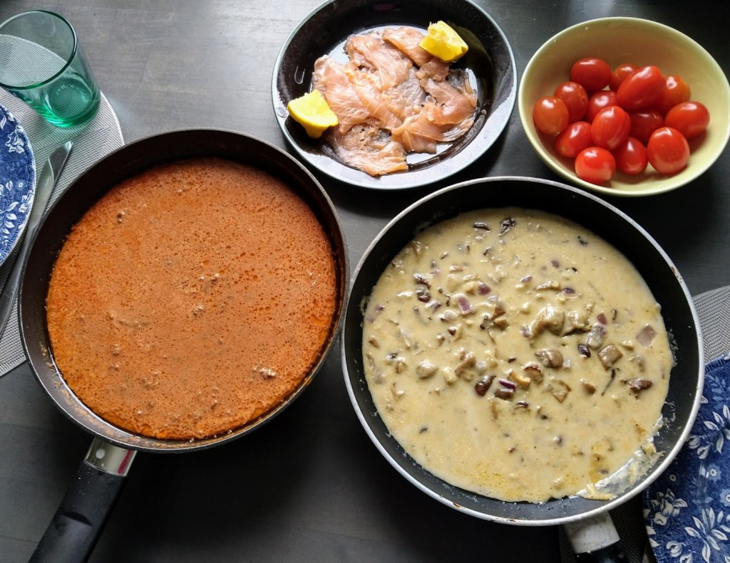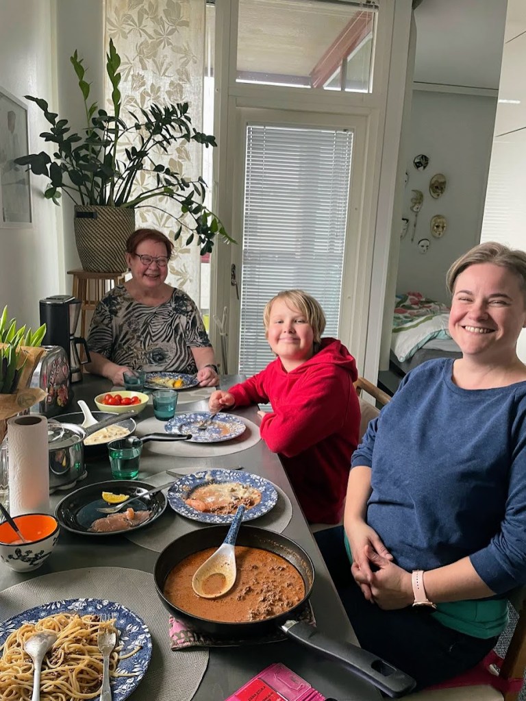 Miten pitäisi toimia, kun pienessä keittiössäni on vain kahden levyn induktioliesi? Odottelen Annaa, Samua ja Jaanaa lounaalle. Kun kysyin, mitä he toivovat, Anna tilasi sienikastiketta, kalaa ja perunoita, Samu ja Jaana spagettia ja jauhelihaa.