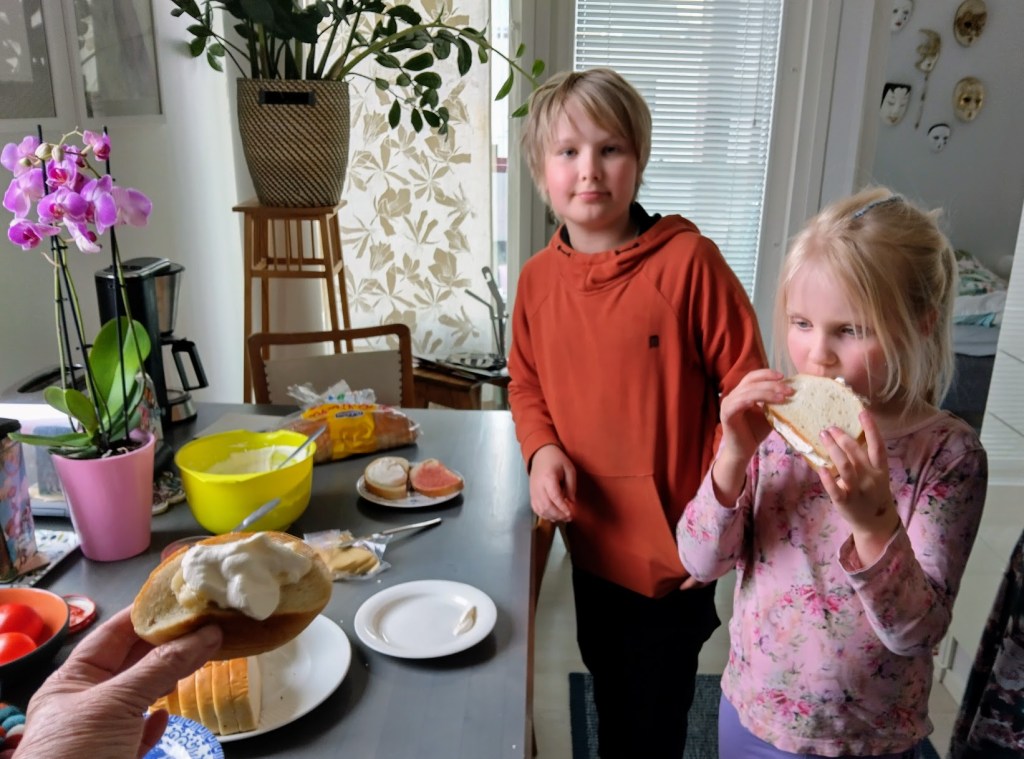 Tänään oli vilkas päivä, kun koko perhe oli koolla. Tarjosin tortilloja kaikilla lisukkeilla kymmenelle hengelle.