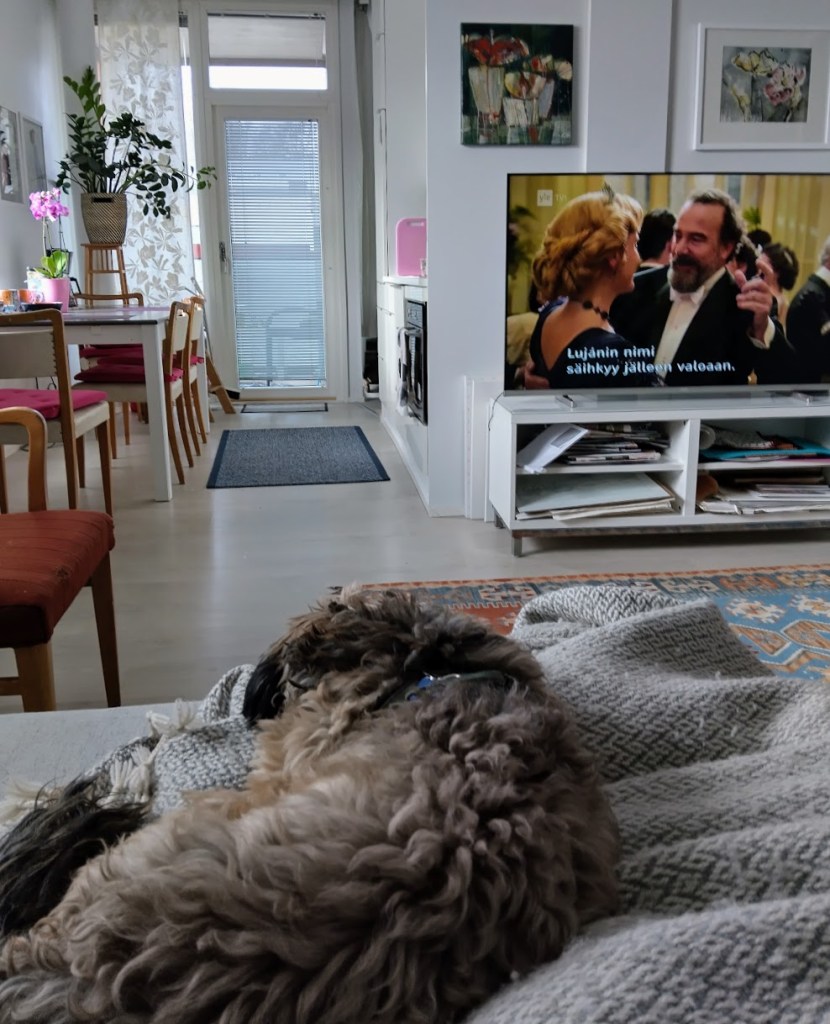 Ihana Fidu tuli taas vierihoitoon. Meillä on tapana istua sohvalla La Promesan äärellä. En ymmärrä, miksi kartanoelämä jaksaa viehättää, vaikka juoni ärsyttää. Aina on kuitenkin joku käänne, jonka vuoksi on pakko jatkaa.
