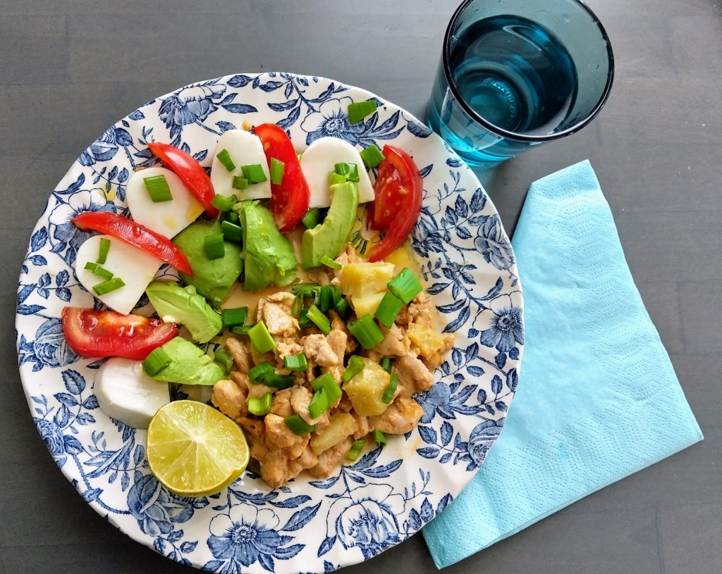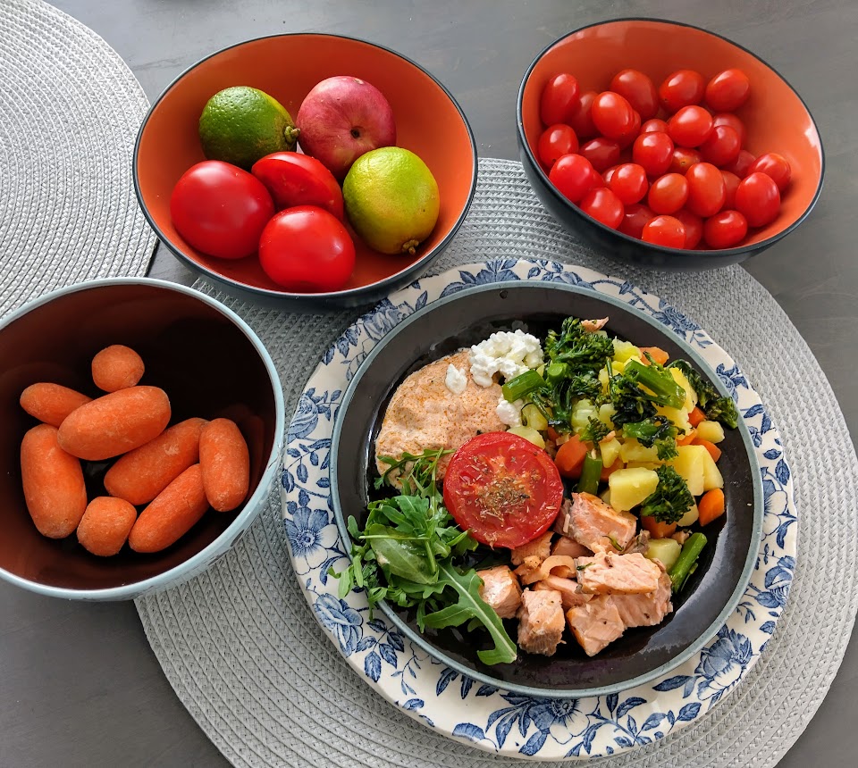 Yritän syödä lounaalla runsaasti kasviksia, papuja ja proteiinin lähteinä kalaa ja broileria. Joskus myös tofua. Perunat, riisi ja pasta eivät ole kiellettyjen listalla, mutta olen vähentänyt niiden määrää. Löysin ilokseni kaupasta varhaiskaalia jo maaliskuussa. Olen raastanut sitä coleslawksi ja hauduttanut pannulla lisukkeeksi. Kaalikeitto ei jostain syystä houkuttele.
