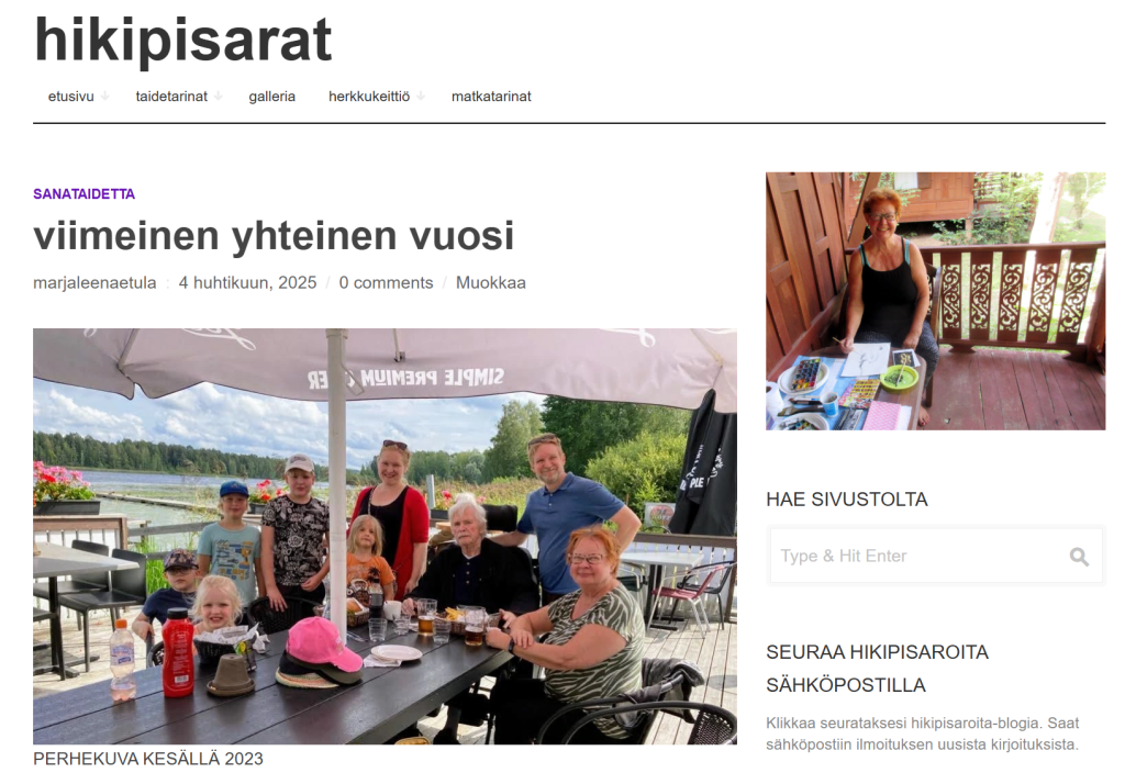 Olen lukenut haikeana muutaman vuoden takaista kirjoitustani viimeisistä ajoista, kun kaikki oli vielä suhteellisen hyvin. Paljon oli unohtunut. Elettiin korona-aikaa ja menot olivat vähissä. Tarina löytyy otsikolla Viimeinen yhteinen vuosi.