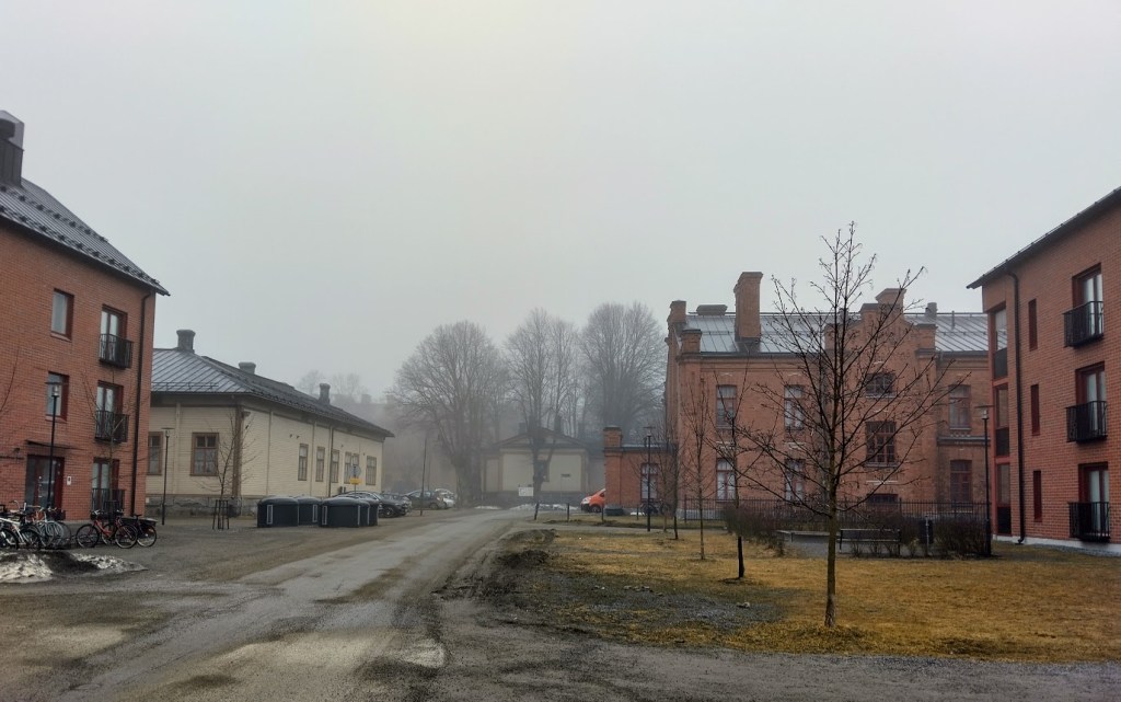 Aamulla maisema oli sumun peitossa. Reippailin kauppaan, sillä saan iltapäivällä ystävä Ilman vieraaksi. Leipomolakko on meneillään, mutta se ei näkynyt leipähyllyllä.
