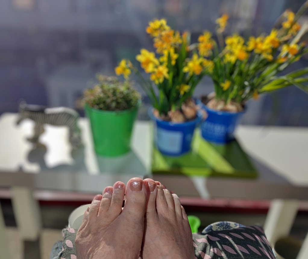 Mikä ilo onkaan käydä silloin tällöin jalkahoidossa. Sain tänään kunnon käsittelyn. Kelpaa nyt odotella kesäkelejä. Parvekkeella oli jo melkein liiankin kuuma. Ihmeellistä.